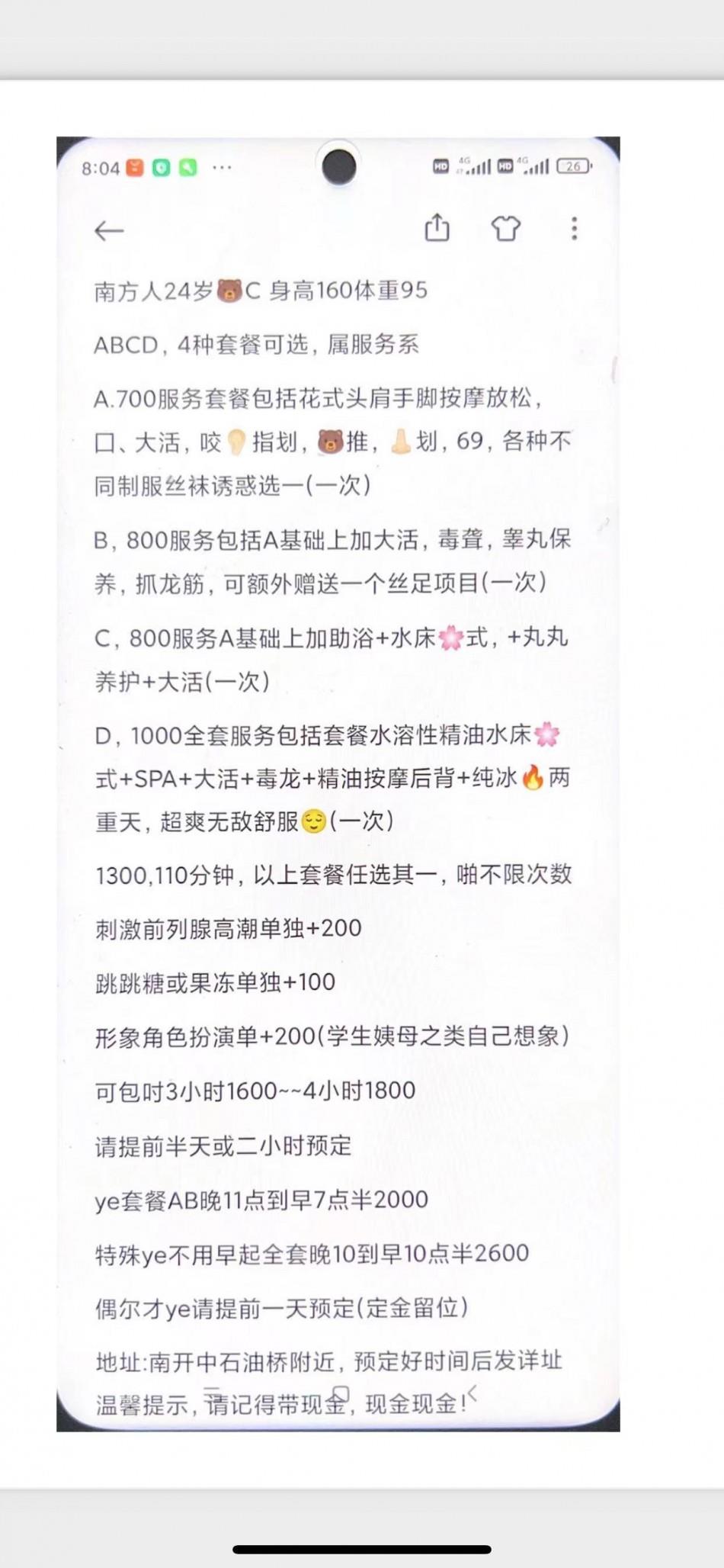 先介绍一下这个大姐,还可以ms,小弟不喜欢没有选。长得就这么回事,整容太厉害了。津南、咸水湖附近活动
